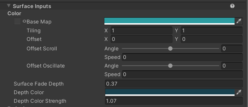 Your surface fade depth is how much the shoreline fades and your depth color strength controls the amount of your depth color